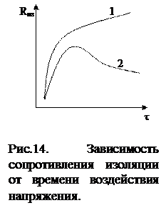 Известное значение может иметь нагрев слабых мест в диэлектрике током утечки или начало ионизации остаточного воздуха, образующего газовые включения в диэлектрике. Кроме того, при напряжении равном
