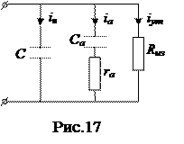 Это явление, свойственное конденсаторам с замедленной поляризацией (с абсорбцией) можно объяснить, пользуясь эквивалентной схемой (рис.17). При кратковременном замыкании полностью заряженного конденсатора на малое сопротивление r, емкость C (основная часть емкости обусловленная быстрой поляризацией) разрядится очень быстро, так как скорость ее разряда будет определяться произведением