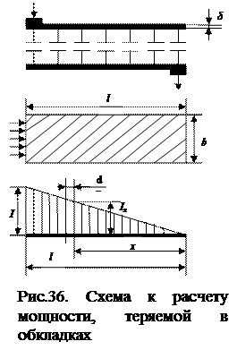Для того, чтобы получить величину мощности теряемую во всей обкладке, надо проинтегрировать это выражение по длине обкладки и умножить на 2, так как обкладки две:
