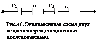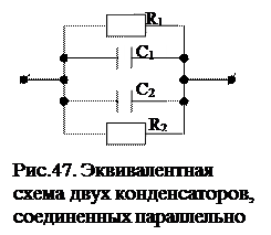 Представим два параллельно соединенных конденсатора в виде параллельных эквивалентных схем (рис. 47), обозначив величины емкостей