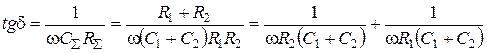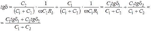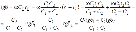 равен сумме произведений из величины тангенса угла потерь отдельных конденсаторов на величину соответствующей емкости, деленной на сумму емкостей. Если под емкостью