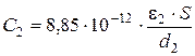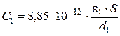 Это выражение является приближенным, так как в нем не учтены тонкие зазоры между слоями диэлектрика, диэлектриком и обкладками. Эти зазоры заполнены воздухом или пропиточной массой и при точных расчетах могут быть учтены третьей емкостью включенной последовательно с