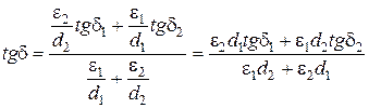 Выражение [140] можно использовать для вычисления потерь в конденсаторах с комбинированным диэлектриком, имеющим последовательно включенные слои двух диэлектриков с толщиной