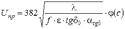 Действующее значение пробивного напряжения на переменном токе определяется формулой: