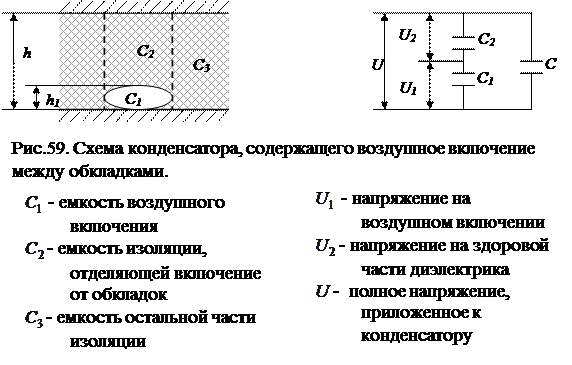 Рассмотрим диэлектрик, содержащий воздушное включение. Ему соответствует эквивалентная схема: