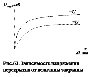 При наличии неоднородного поля у края обкладки необходимо разбивать высоковольтный конденсатор на ряд последовательно включенных секций, с таким расчетом, чтобы напряжение, приходящееся на каждую секцию, находилось на линейном участке зависимости, и принимать, что значение напряжения испытания и напряжения перекрытия будут пропорциональны ширине закраины. При этом величину закраины надо увеличить пропорционально возрастанию испытательного напряжения, на значение которого надо ориентироваться при выборе закраины.