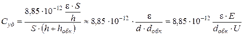 Для фольговых обкладок, где толщина обкладок соизмерима с толщиной диэлектрика: