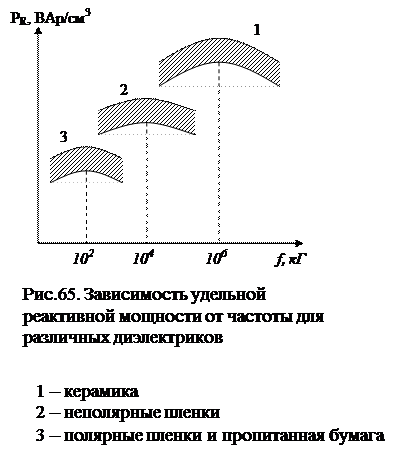 Максимальное значение удельной реактивной мощности располагается в различном диапазоне частот, причем с уменьшением угла потерь конденсатора максимум удельной реактивной мощности возрастает и сдвигается в сторону более высоких частот.