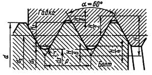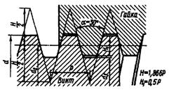 Рис. 40. Профиль нарезки метрической резьбы.