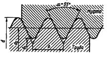Рис. 41. Профиль нарезки трубной резьбы.