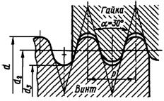 Трапецеидальная резьба (рис. 42) стандартизована и имеет угол профиля нарезки 30°. Резьба широко используется для подвижных соединений, работающих в обе стороны под одинаковой нагрузкой.
