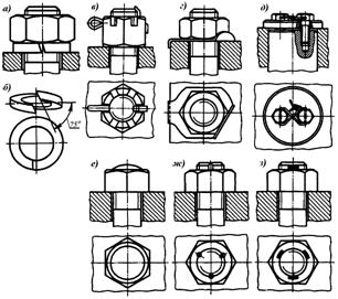 Некоторые, достаточно распространённые, способы стопорения резьбовых соединений представлены на рис. 36.
