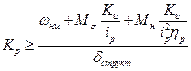 Ниже приводятся соотношения для оценки коэффициента разомкнутой системы с учетом составляющей ошибки от измерительного устройства соответствующего класса точности. При это учитывается, что на входе системы действует линейно возрастающий по углу (равномерная заводка) и одновременно действует постоянный момент нагрузки, обусловленный наличием сухого трения.