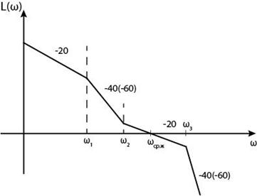 При ГОС желаемые частотные характеристика берутсяодной из разновидностей типовых с чередованием наклонов как показано на рисунке ниже: