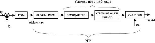 Таким образом, мы сами сознательно вводим в состав системы нелинейность типа «насыщение». Рассмотрим далее схему демодулятора.