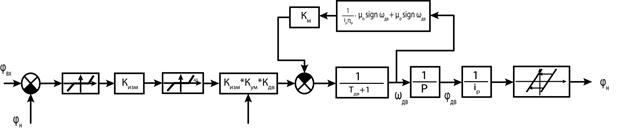 В составе проектируемой системы существует целый ряд нелинейностей, а мы ее рассматриваем как линейную. Здесь нечувствительность, порождаемая измерителем рассогласования, насыщение, которое мы сами вводим в виде амплитудного ограничителя, люфтредуктора и момент сил сухого трения.