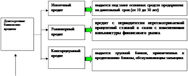 Банковский кредит является наиболее распространенной формой кредитных отношений. Банковское кредитованиеможет осуществляться в виде краткосрочных (до 1 года), среднесрочных (до 3 лет) и долгосрочных кредитов.