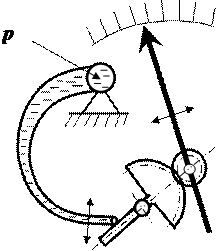изогнутая металлическая трубка из упругого материала, в которую подают измеряемую среду под давлением р. При этом трубка стремится разогнуться, причем чем больше давление, тем на большую величину она разгибается. Глухой конец трубки присоединен к рычажной системе, имеющей зубчатое зацепление, на одной из из осей которого установлена стрелка, показывающая величину давления.