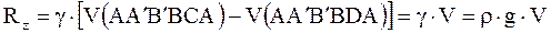 где каждая из составляющих равна произведению удельного веса на объем столба жидкости, дном которого является выделенная нами поверхность тела.