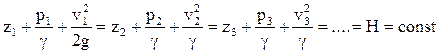 Все эти величины имеют линейную размерность, следовательно, их сумма, обозначенная как Н, также имеет линейную размерность, то есть размерность длины. Величину Н называют полным напором в данном сечении струйки.