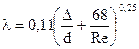 Коэффициент трения l в этой зоне также как и при ламинарном режиме не зависит от шероховатости и является функцией только числа Рейнольдса