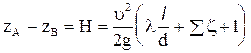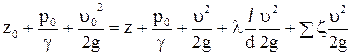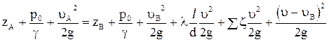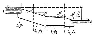 Рассмотрим простой трубопровод, составленный из труб разного диаметра, уложенных в одну линию одна вслед за другой (последовательное соединение труб). Уравнение Бернулли для этого случая запишется в виде: