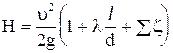 Таким образом, напор Н при истечении под уровень равен сумме всех сопротивлений