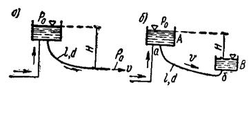 при истечении же в атмосферу он делится на две части: кинетическую энергию, уносимую потоком из трубы и сумму потерь напора