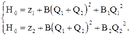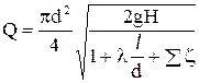 2. Определение расхода Q, при заданной величине перепада напора Н, диаметрах и длинах трубопроводов.