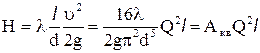 В области квадратичного сопротивления величина параметра А = Акв зависит только от диаметра трубопровода и не зависит от его длины х. Подставляя вместо Qx его значение, имеем