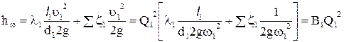 В частном случае, при величине транзитного потока Qтр = 0, величина потерянного напора определится, как