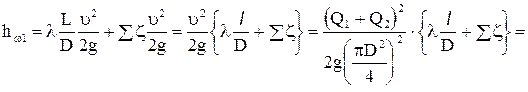 Расход Q до разветвления труб и после их объединения один и тот же.