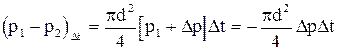 Определим сумму импульсов всех сил, действовавших на эту массу в течение времени Dt. Импульсы силы тяжести и силы давления со стороны стенок трубы равны нулю, т.к. эти силы нормальны оси трубопровода. Силы давления на торцевые сечения дают в сумме импульс, равный