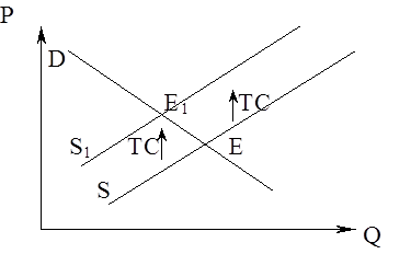 Смещение кривой предложения будет тем сильнее, чем выше уровень трансакционных издержек TC.