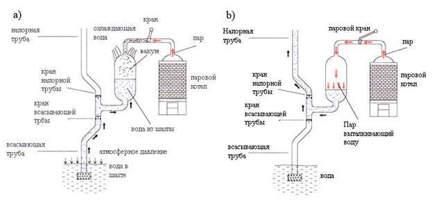 Рис. 4. Схема работы парового насоса Томаса Севери