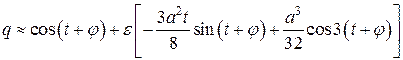 подбираются из условия отсутствия секулярных членов. Подставляя разложение (10) в уравнение (8) после несложных преобразований можно получить приближенное решение. Например, с точностью до членов порядка