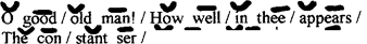 Surrey's blank verse, which has been mentioned, is fairly good; he keeps it alive by changing the positions of the main beats in the lines. In drama Marlowe's famous "mighty line" is blank verse too and much finer poetry, and Shakespeare improved on it. In the 17th century John Milton made blank verse the regular metre of epic.