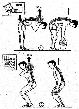 Рис. 10.3. Воздействие на межпозвоночные диски груза,