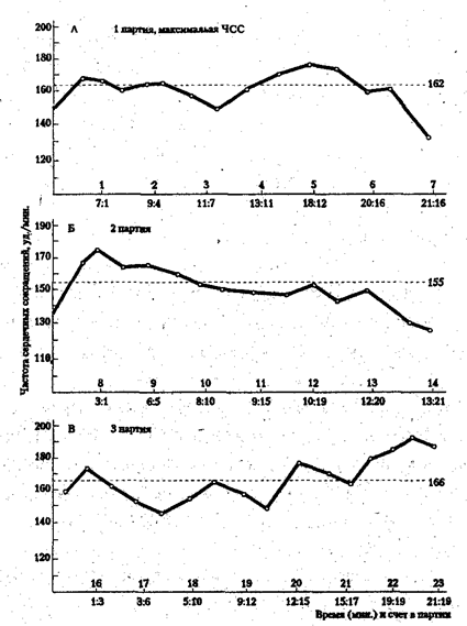Рис. 11.5. Пульсовая стоимость игры в настольный теннис в соревновательных условиях (из материалов Г.В. Барчуковой