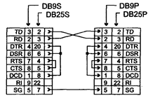 Это правило предполагает, что разъемы АКД могут подключаться к разъемам АПД непосредственно или через переходные «прямые» кабели с розеткой и вилкой, у которых контакты соединены «один в один». Переходные кабели могут являться и переходниками с 9- на 25-штырьковые разъемы (рис. 2.7).