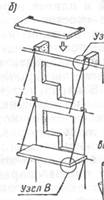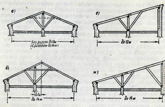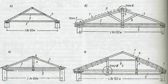 г — с двумя подвесными бабками, прогонами и наслонными стропильными ногами;