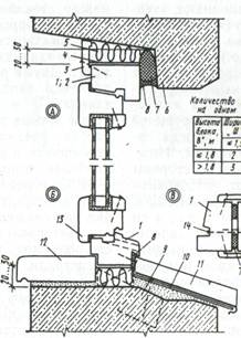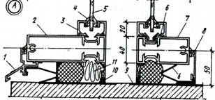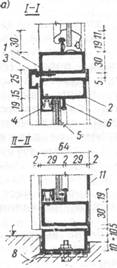 3 — нащельник; 4 — штапик; 5 — стекло; 6 — резиновая прокладка;