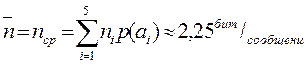 n=2 бит/сообщение.,отсюда p(ai)=p(aj)=1/m,