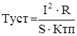 I2 * R * dt = Kтп * S * Tуст * dt или I2 * R = Kтп * S * Tуст