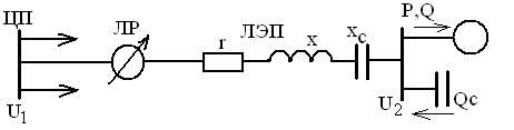 4) Изменение реактивного сопротивления за счет последовательно включенных конденсаторов (Х – Хс). Этот способ называется «продольная компенсация». Он используется для ВЛ 6 кВ средней длины, для длинных линий высокого сверхвысокого напряжения и для питания резкопеременной нагрузки (дуговые печи, прокатные станы, сварка).