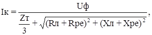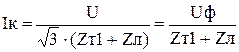 При трехфазном замыкании ток Iк протекает только по линейным проводникам, имеющим сопротивление Zл: