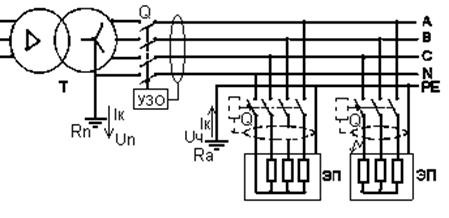 Ток замыкания на землю в сетях ТТ невелик и для его обнаружения необходимо устанавливать устройства защитного отключения (УЗО), действующие обычно на токе нулевой последовательности или на дифференциальном (разностном токе).