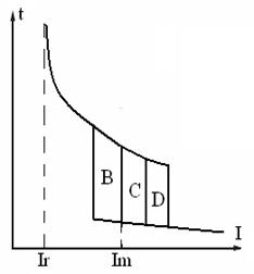 Бытовые автоматы: «B» - Im = (3 – 5) Ir, «C» - Im = (5 – 10) Ir, «D» - Im = (10 – 20) Ir).