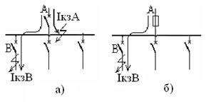 7.6.1. Токовая селективность основана наразности токовКЗ IкзA и IкзB и выборе соответствующих уставок защит (рис.7.10, 7.11).