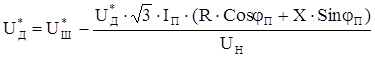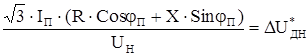 ΔUд = √3 · Iп · [(Rл1 + Rт + Rл2) · Cosφп + (Хл1 + Хт + Хл2) · Sinφп], (8.1)